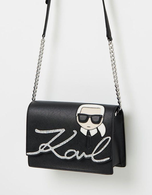 Karl Lagerfeld Ikonik shiny logo shoulder bag, Black